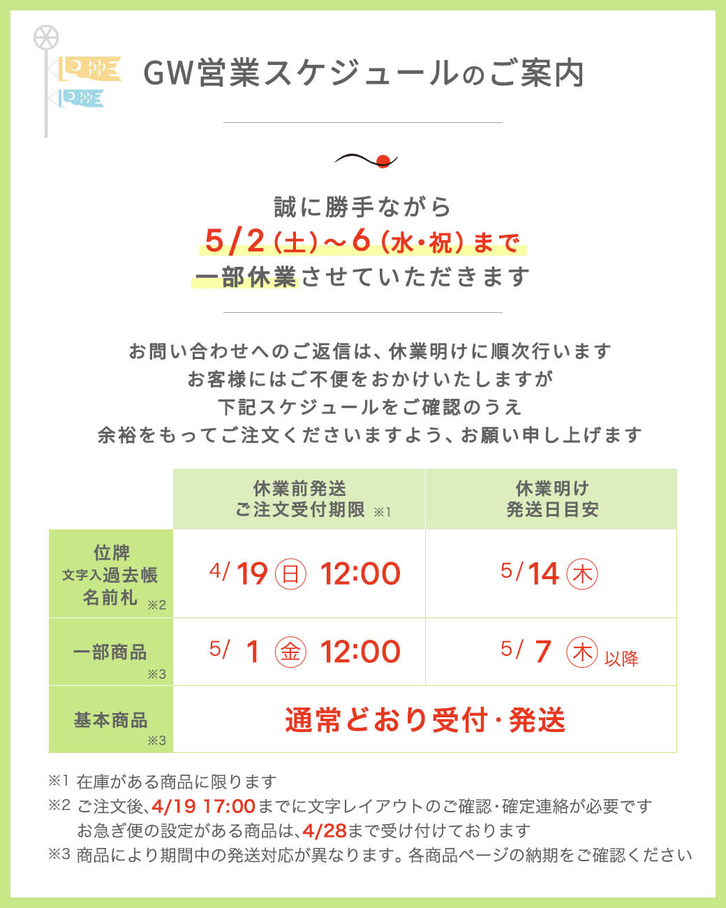 ※休業明け発送日は商品によって異なります。